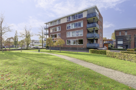 Het is een kleinschalig complex en kijkt vanuit de woonkamer fraai in het ‘groen’.